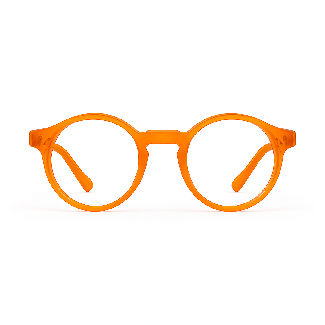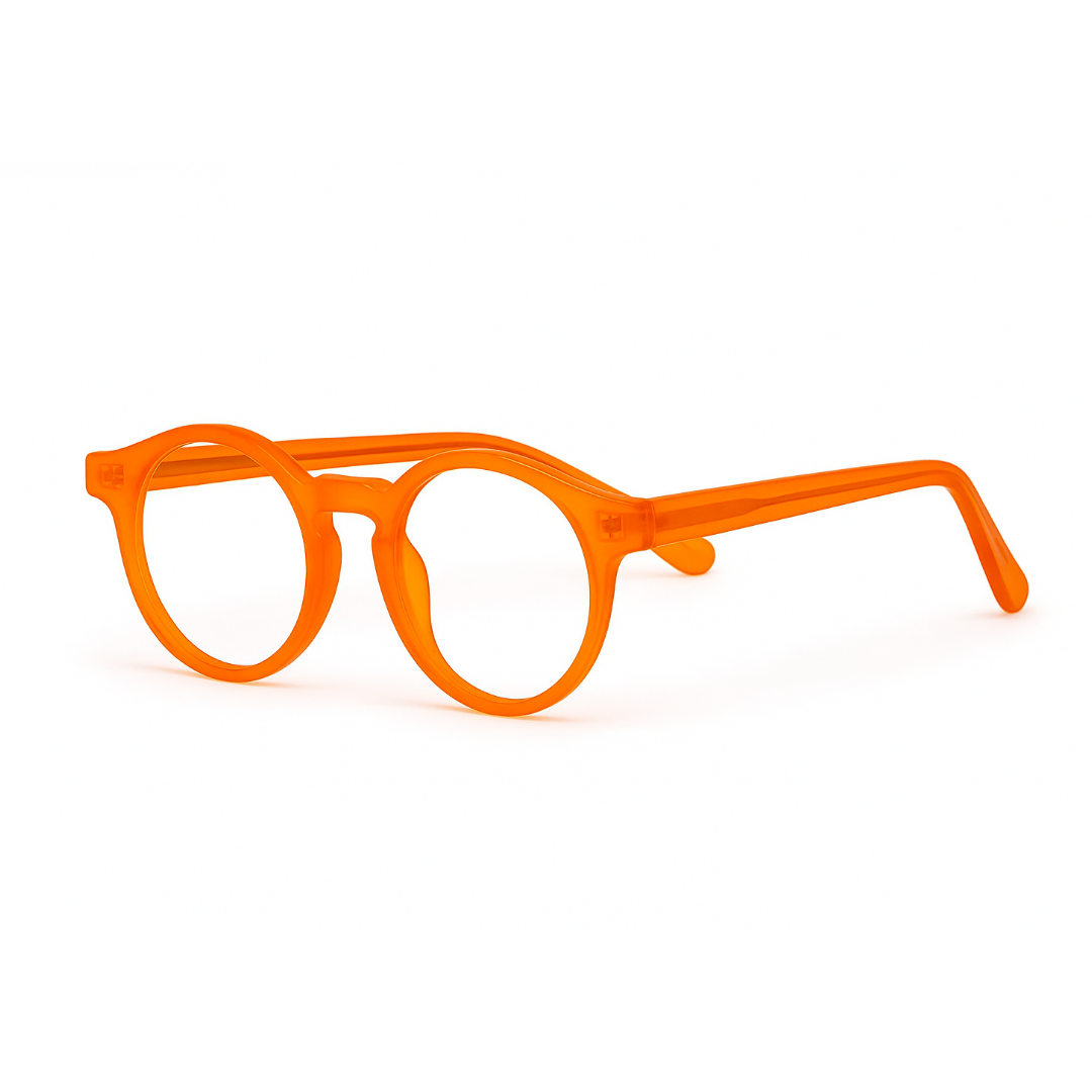 Armação arredondada em laranja translúcido vibrante