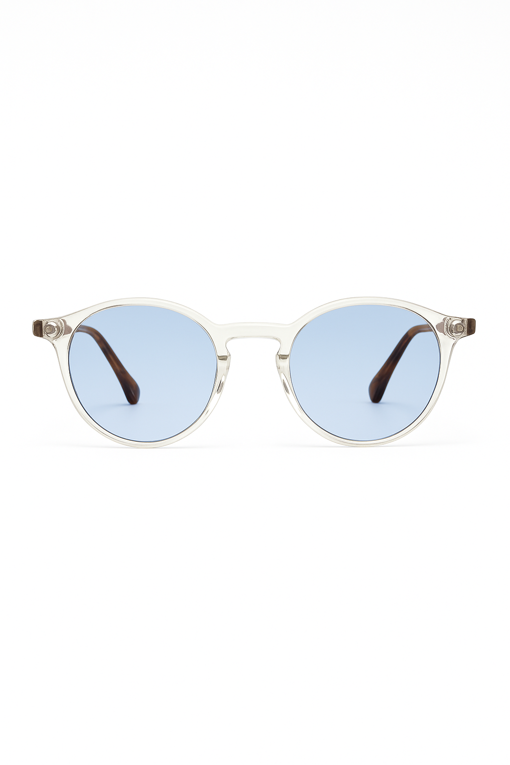 Colapesce — Inspirado na lenda siciliana que une homem e mar, este modelo combina a leveza de uma armação transparente com o frescor das lentes azul-oceano. As hastes em padrão natural acrescentam um toque artesanal e sofisticado, tornando-o ideal para quem busca estilo atemporal com um ar mediterrâneo. Perfeito para dias ensolarados à beira-mar ou passeios urbanos com charme italiano.