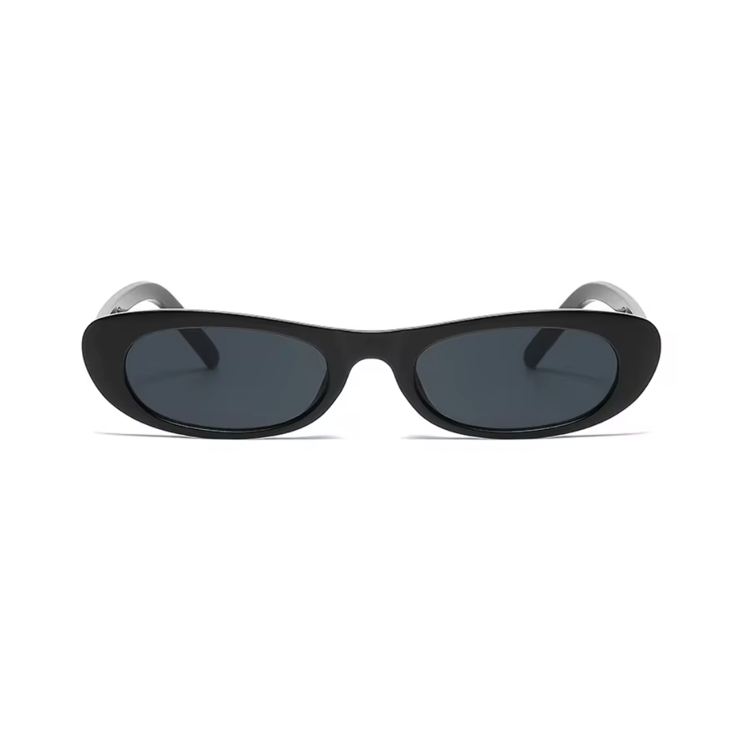 Com design oval minimalista, a armação preta de linhas suaves valoriza o rosto e transmite personalidade. As lentes escuras oferecem proteção contra os raios UV, garantindo conforto visual sem abrir mão do estilo.