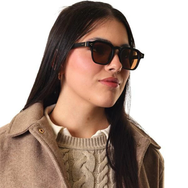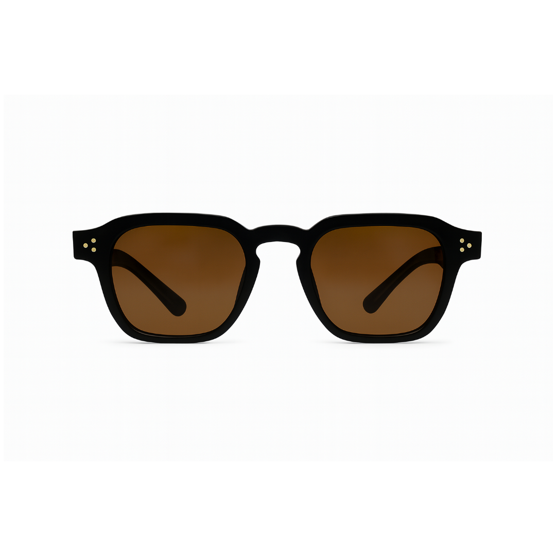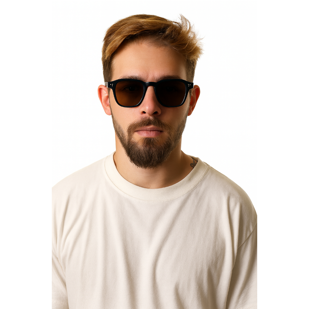 O modelo Tarantella combina a elegância clássica italiana com um toque moderno e ousado. Sua armação quadrada, robusta e marcante, é confeccionada em acetato premium na cor preta, oferecendo durabilidade e conforto excepcionais. Os detalhes metálicos sutis nas laterais proporcionam um acabamento refinado, enquanto as lentes marrom premium oferecem proteção total contra raios UV e excelente clareza visual.